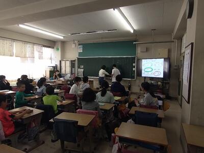 5年生が、ミシンでエプロンを作っています。ミシンの使い方に慣れていないので、苦戦する子もいますが、頑張って縫っていました。
