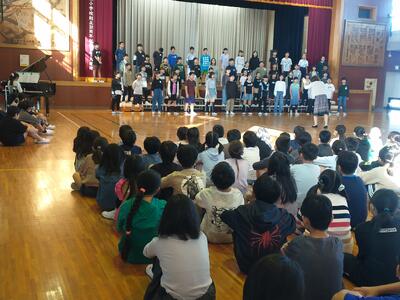 明日、市川市児童生徒音楽会の午後の部に、6年生が出演します。今日は、全校児童の前で合唱を披露しました。下学年の児童は、6年生のきれいな歌声に聞き入っていました。明日もきっと練習の成果を発揮してくれるでしょう。