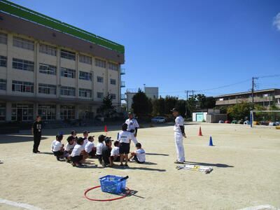 本日、千葉ロッテマリーンズアカデミーの方が来校し、4年生にボールの投げ方やベースボール型のゲームを通して、打ち方やボールの捕り方などを教えてくださいました。元プロ野球選手の方のご指導はとても分かりやすく、児童はベースボール型ゲームを楽しみながら、運動していました。今日教えていただいたことを、体育の授業でも生かしていきたいです。お忙しい中、教えてくださった千葉ロッテマリーンズの皆様、ありがとうございました。