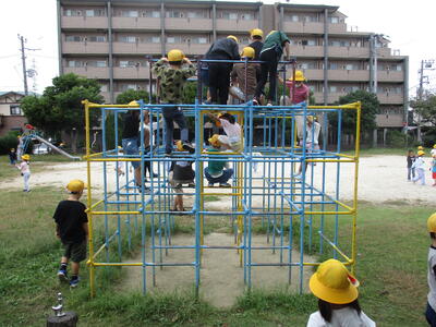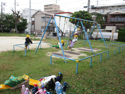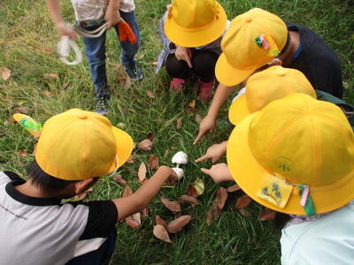 1年生が10月17日の1.2時間目に、通学路・公園探検に行きました。遊具で遊んだり、落ち葉など身近な秋を見つけたりしました。