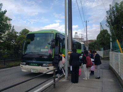 出発式を終え、ほぼ予定どおりの時刻に出発しました。今日は欠席がなく、全員参加で元気に出発しました。いってきます。