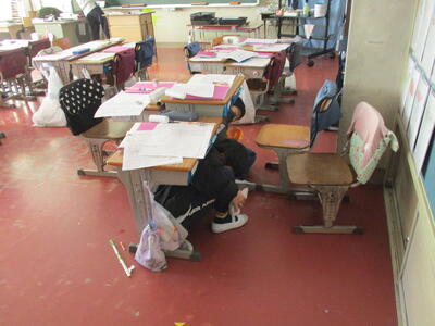 今日の業間休みに予告なしで避難訓練を実施しました。地震はいつどこで起きるかわかりません。自分の身を守るため、日ごろから訓練しておくことが大切です。