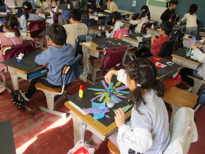 1年生「ふわっと ぎゅっと おはながみのえ」