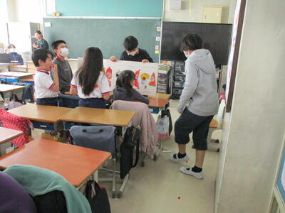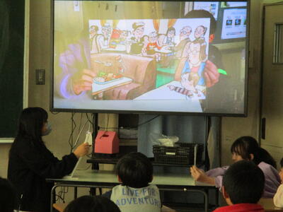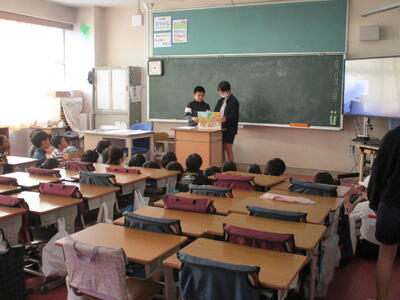 今日の昼休みに、縦割りなかよしグループで5、6年生が下学年の子たちに読み聞かせをしました。どのグループも静かに、お兄さん・お姉さんの読むお話に聞き入っていました。