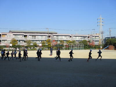 今週から19日まで、福栄ギネス月間として、持久走に取り組んでいます。体育の時間に、低学年3分間・中学年4分間・高学年6分間、持久走を行い、自分の記録を伸ばし、体力向上を目指します。