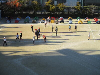 12月3日の業間休みに5年生、4日の業間休みに6年生の鬼ごっこ大会を行いました。6年生は、先生たちが鬼になって追いかけます。校長先生も教頭先生も鬼です。1回戦目は、全員つかまってしまいました。2回戦目は、先生たちの体力が続かず・・・たくさんの子が逃げ切りました。子どもは風の子。寒さに負けず外でたくさん遊んで体力をつけてほしいです。