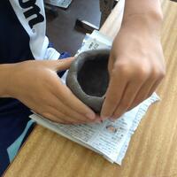 6月29日(木)に6年生が陶芸教室を実施しました。陶芸会社から講師の先生をお招きして、新聞紙ろくろの作り方や文様のつけ方などを学んでから制作をしました。