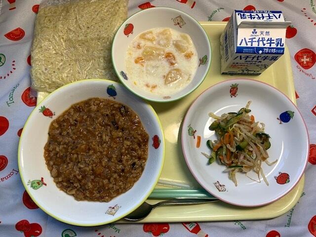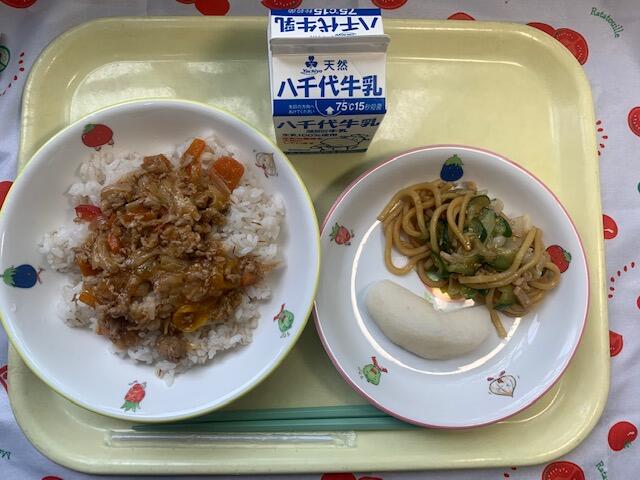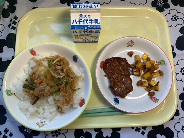 ※予定献立表ではプルコギ丼と表記しましたが、盛り付けの関係上、チャプチェ丼に変更させていいただきました。