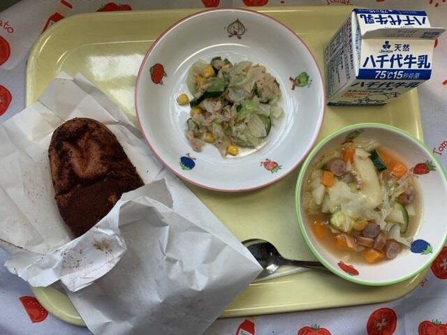 献立:きなこあげパン、じゃこサラダ、夏野菜のポトフ