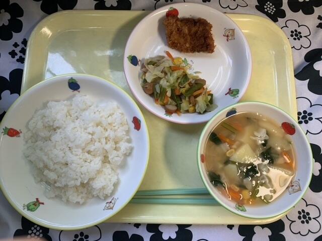 イカフライ 投稿日時 : 2023/05/26 編集長 今日はメインに「イカフライ」を提供いたしました。 手作りフライ、おいしいと好評でした。 献立:ごはん、イカフライ、やさいソテー、米粉マカロニスープ