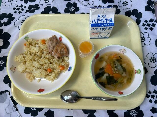 人気の献立でした 投稿日時 : 2024/09/19 編集長 9月19日(木)の献立です。 献立:カレーピラフ、バーベキューチキン、ABCスープ、ひとくちみかんゼリー よく食べていました。普段よりも残菜量も少なかったようです。