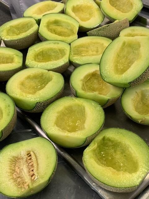 「メロン」を出しました 投稿日時 : 2023/05/12 編集長 今日は献立に茨城県産のメロンを提供しました。 甘くて水分が多くジューシーでとても美味しいメロンです。 メロンが果物で1番好き!!という声を何人かから聞きました。 献立:ぶたとうずらの中華丼、春雨スープ、メロン