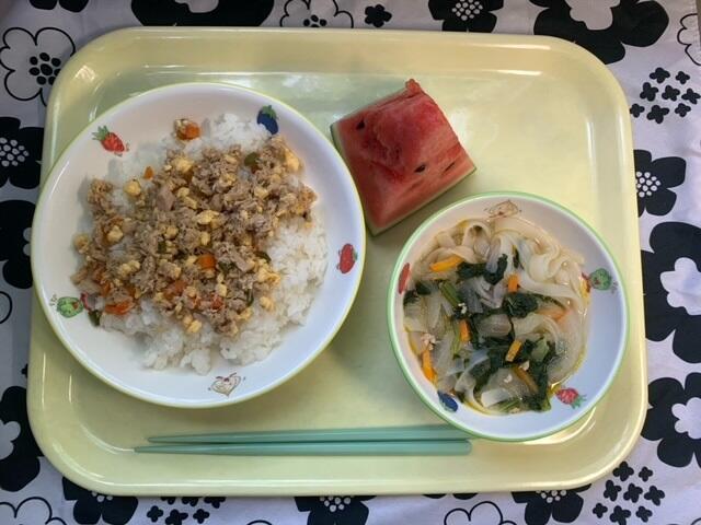 今年スイカ初登場です! 投稿日時 : 2023/05/25 編集長 今日は今年初めて「すいか」をだしました。 今日のすいかは熊本県産のとても大きな「大玉すいか」でした。 おいしいと好評でした♪ 献立:ツナそぼろどん、フォー、すいか