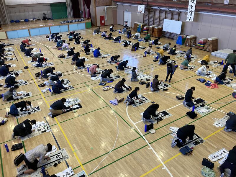 取り組んだ書き初めは1月23日(月)~27日(金)まで、各教室前廊下に掲示しております。