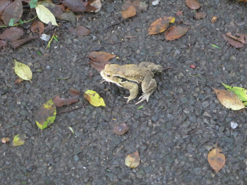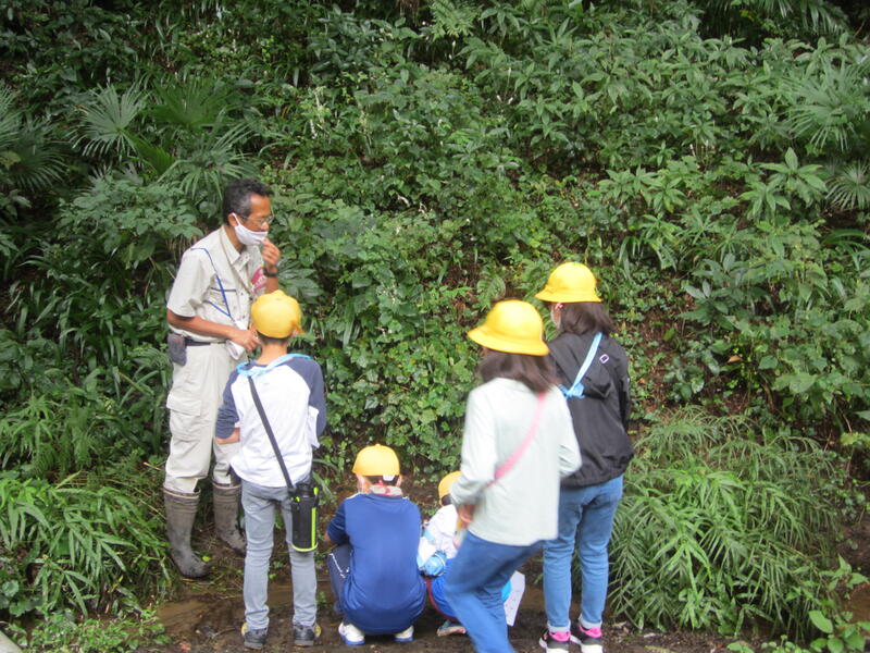ヒキガエルや大カマキリを発見し、歓声を上げる子供たち。