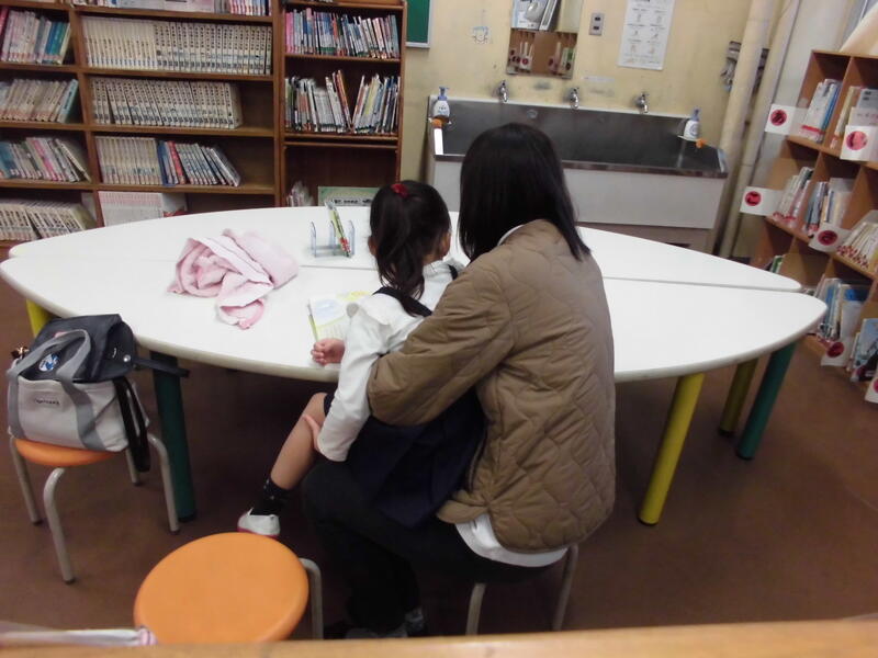 親子で図書室を訪れ、本を通じて笑顔の会話が広がる素敵な光景と出会えました。