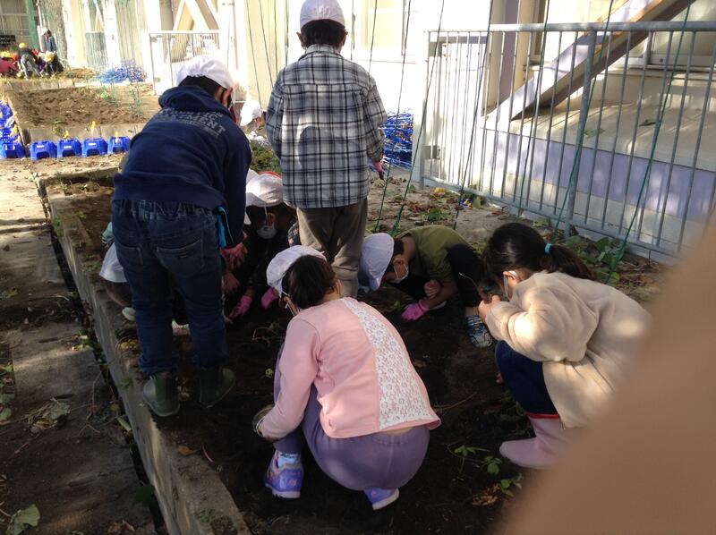 11月22日(火)に校庭の花壇でお芋ほりをしました!