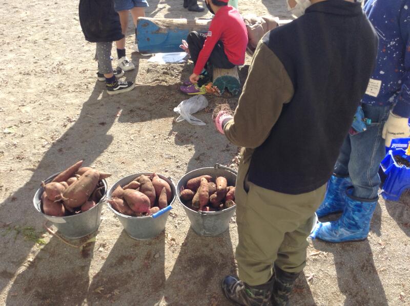大きいお芋は数人で掘ったり、お芋がありそうな場所を教えあったりとお互いに協力しながら掘ることができました。