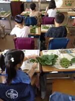 日頃、一つ一つに枝豆がどのようにできるのかを見て、楽しく枝豆をもいでいました。もいだ枝豆は、給食として全校で食べました。2年生が一つ一つ丁寧にとってくれた枝豆はとてもおいしかったです。