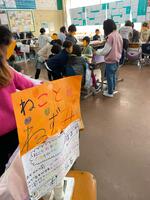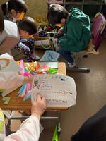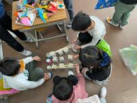 2年生が生活科で材料集めから作るところまでを自分たちで考えたおもちゃを1年生に遊ばせてあげたり、プレゼントしたりしていました。