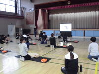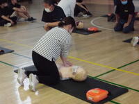 学校では、6月から始まる水泳指導に備えて、市川市消防局の方を講師として招き、2年もしくは3年毎に救命救急講習会を実施しています。