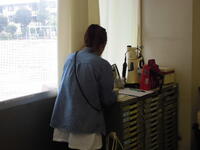 5年生の家庭科の授業。お茶の入れ方です。ほっと一息。ちょっと熱かったみたいです。