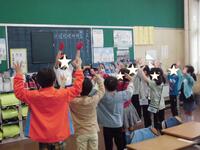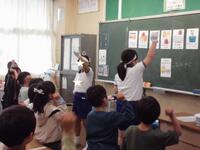 クイズは、初級・中級・上級とあってだんだん難しくなってました。1年生はわかったかな?じゃんけんは、富美浜オリジナルです。富美浜ポーズ・元気ポーズ・給食ポーズでじゃんけんします。代表委員と同じポーズだと勝ちです。