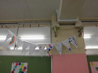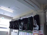 ピロティーには、各クラスのスローガンが貼られています。どのクラスも気合が入っています。