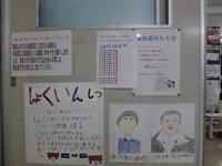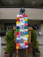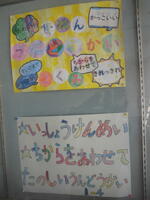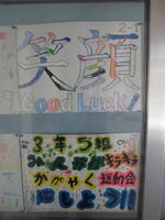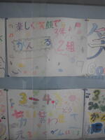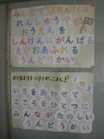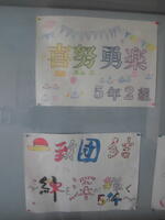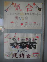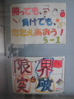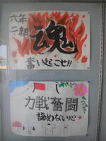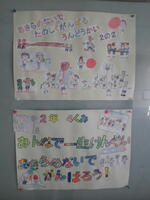 ピロティーには、各クラスのスローガンが貼られています。どのクラスも気合が入っています。