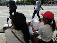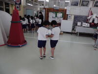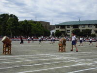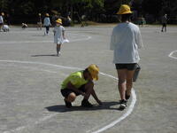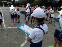 本校では、ペア学年で行います。上の学年は下の学年の記録を取るなどサポート役でもあります。