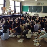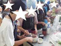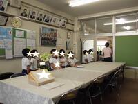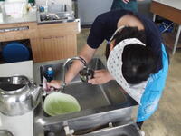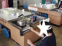 5年生の家庭科の授業。お茶の入れ方です。ほっと一息。ちょっと熱かったみたいです。