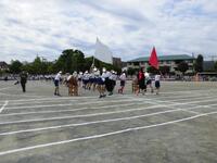 開会式 応援団長の選手宣誓を皮切りに運動会の始まりです。