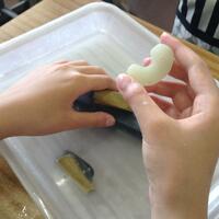 5月28日に、6年生の歴史の授業の理解を深めるために、古代のものを使った体験学習がありました。