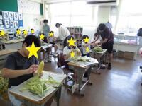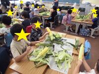 1年生とかぜのこ学級の児童が、給食に出される全校分のとうもろこしの皮むきを行ってくれました。