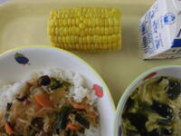 みんなに手伝ってもらったとうもろこしは、ゆでて給食に出されました。とても甘くておいしかったです。