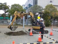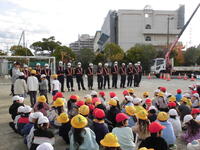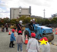1年生は、国語の「はたらくじどうしゃ」「のりものカードでしらせよう」の学習のまとめとして、実際に工事車両をみたり乗ったりする体験をしました。