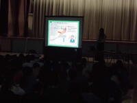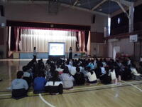 スライドを見ながら、現在の地球環境の実態を学び。自分たちや家庭でできることなどを考えることができました。