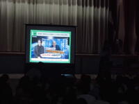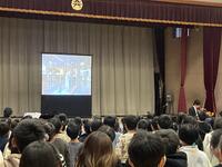 最後に、スクリーンに校舎が映し出され、スギテツさんの演奏に合わせて、みんなで校歌を歌いました。