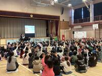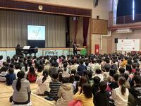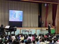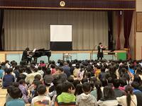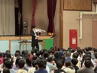 誰もが知っているクラシックの名曲「剣の舞」と「ずいずいずっころばし」「運命」と「犬のおまわりさん」など児童が知っている曲と合わせて聴かせてくれました。また、「トムとジェリー」のアニメーションに合わせて演奏してくれるなど聴くだけでなく観て楽しいステージをみせてくれました。