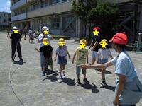みんな一緒に飛べるように、6年生はゆっくり縄を回していました。