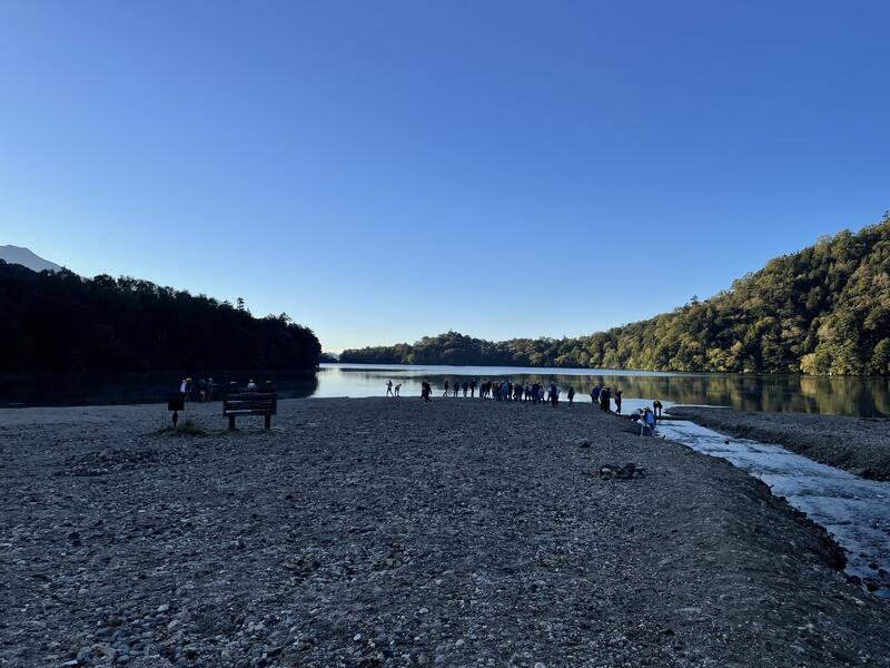 朝は、希望者で湖畔と源泉コースに分かれて朝散歩をしています。