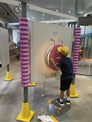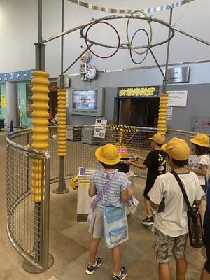 現代産業科学館で見学中です。科学実験や展示を見ながら科学の不思議を体験しています。