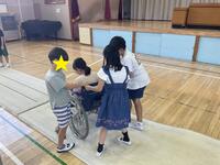 福祉体験教室では、車いす体験やアイマスク体験を通して、障害のある方や高齢者の方への理解を深め、「自分たちには何ができるのか」など子供たち自身が考え、行動ができるようになるための学習が行われました。