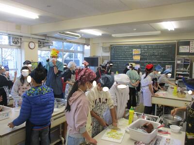 2月3日(火)、5年生が調理実習で、ご飯とみそ汁を作りました。子供たちはグループのみんなと協力しながら煮干しでだしを取ったり、具材を丁寧に包丁で切ったりしてみそ汁を作っていました。保護者の皆様もサポートしてくださり本当にありがとうございました。