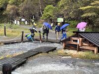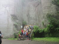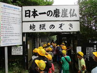 5年生の自然教室も2日目になりました。起床6時15分、6時40分には朝の集い開始です。集合写真を撮影し、朝食を食べました。おかずが豊富で、ごはんを何杯でも食べられそうです。鋸山の前に道の駅「保田小学校」で一休み。もともと小学校だったところを2015年に道の駅にリニューアルしました。二宮金次郎像もあります。鋸山は…上のほうは雲の中。かすんでいます。幻想的な絵も見られましたが、遠くまでの景色が見られなかったのは残念です。地獄は十分にのぞけました。