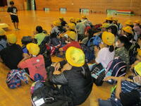 帰校は渋滞のため、30分ほど遅くなりました。また、小雨まじりだったため、到着式は体育館で行いました。体育館を空けていただいた二俣MBCの皆様に感謝です。