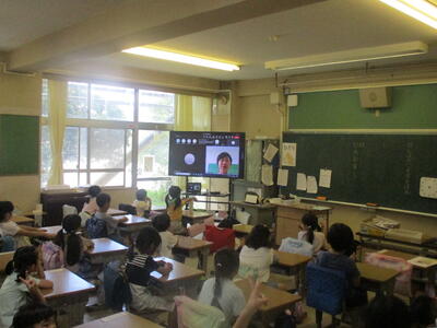 今日は久しぶりに全学年がそろいました。「冬休みを迎える会」は体育館で行う予定でしたが、感染拡大防止のため、オンラインでの実施となりました。1年生、さくら学級のみんなはいい姿勢で、しっかりと話を聞いていました。今日は、校長先生の話のあとに、「少年補導員」の方々からお話をいただきました。少年補導員は、非行防止と健全育成を図ることを目的として、市内各地を巡回し、主に声掛けを行っているそうです。以後お見知りおきをお願いいたします。