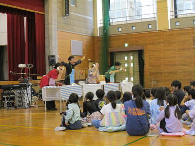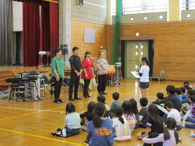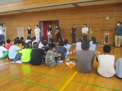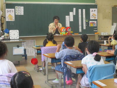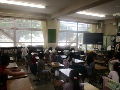 夏休み初日。今日は図書室の開放日となっています。それに合わせて、おはなしサークル「かみふうせん」の方々の読み聞かせを行いました。コロナ禍でしばらく中止していたので数年ぶりの開催です。