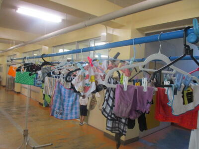 今日は、5.6年生が着衣泳を行いました。着衣泳は、普段の服を着たまま入水する水泳の授業です。 通常の水着での水泳の授業では体験できない「非常時」を体験することで、いざというときに落ち着いて対応できるようにするのが目的です。