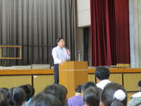 最後は、信篤小の生徒指導主任の先生から、これからの生活について話していただきました。「み・そ・あ・じ」がキーワードでした。み…身だしなみを整えよう。 そ…そうじをしっかりやろう。 あ…あいさつをしっかりしよう。 じ…時間を守ろう。 意識して生活しましょう。
